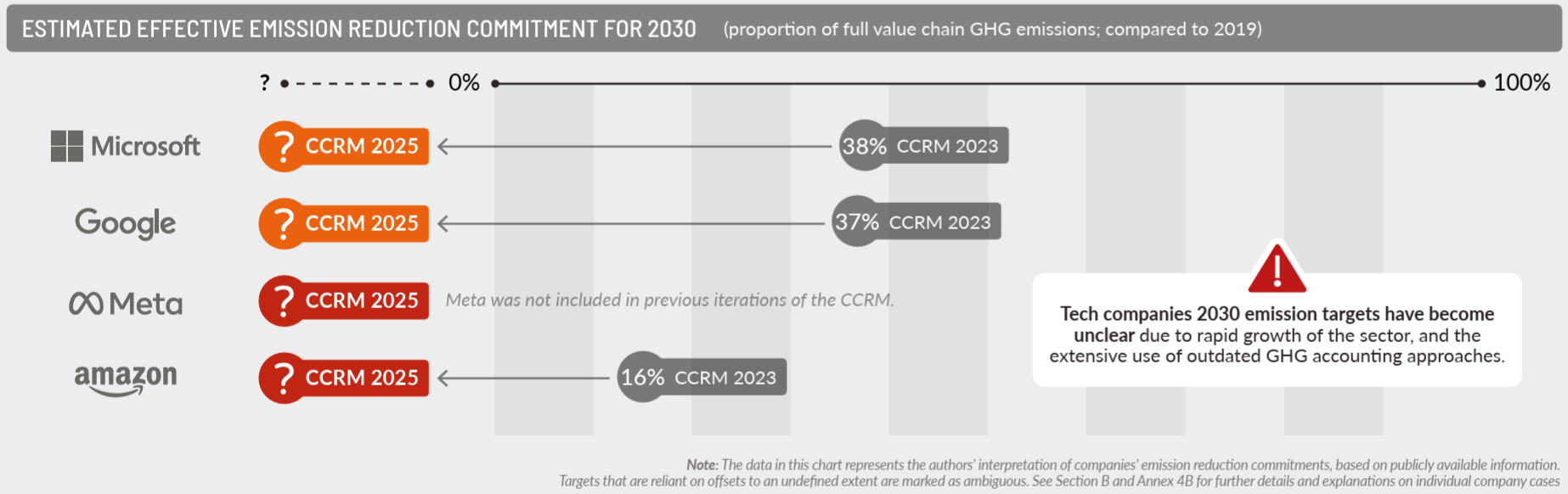 Big Tech Climate Commitments Going Backwards 2023 > 2025 Source Corporate Climate Responsibility Monitor (CCRM) 2025